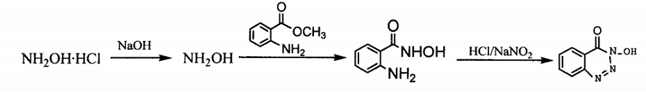 3,4-Dihydro-3-hydroxy-4-oxo-1,2,3-benzotriazine is a heterocyclic organic compound and a polypeptide synthesis condensation agent, referred to as HOOBt. Compared with urea salts such as HBTU and HATU (phosphorus-(7-azabenyltriazol-1-yl)-1,1,3,3-tetramethylurea hexafluorophosphate), HOOBt is not only low in cost, but also more important What is unique is that in the condensation reaction, there is no side reaction in which urea salts such as HBTU and HATU react with primary amines to form guanidinium salts. Therefore, HOOBt is an ideal condensation reagent for peptide synthesis.