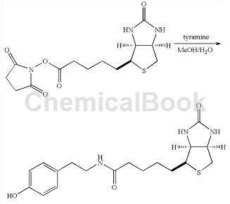 Vitaminol was prepared as follows: To a suspension of N-hydroxysuccinimidyl biotin (6.2 mg, 18.2 μmol) in 500 μL methanol was added 1-propanolamine (1.39 μL, 20.0 μmol). After stirring for 24 hours at 37°C, the resulting solution was purified by reverse-phase HPLC (dp5μ, 10mm × 25cm, 2mL/min, 40 to 75% acetonitrile/water in 15 minutes, retention time: 12.1 minutes) to give vitamin phenol (4.8mg, 88%): 1HNMR (500MHz, CD3OD) δ4.49 (dd, J=8.0, 5.0Hz, 1H), 4.30 (ddJ=8.0, 5.0Hz, 1H), 3.57 (t, J=6.5Hz , 2H), 3.35 (t, J=7.0Hz, 2H), 3.31 (m, 1H), 3.02 (dd, J=13.0, 5.0Hz, 1H), 2.79 (d, J=12.5Hz, 1H), 2.30 (t, J=7.5Hz, 2H), 1.70 (m, 4H), 1.63 (m, 2H) 1.43 (m, 2H); 13CNMR (125MHz, CD3OD) δ176.3, 63.4, 61.6, 60.4, 57.0, 41.0 , 37.4, 36.8, 33.2, 29.8, 29.5, 26.9; FT-IR (thin film) 3287, 3083, 2920, 2863, 1701, 1685, 1632, 1620, 1543, 1509, 1478, 1458, 1323, 1265, 1240, 1205 , 1142, 1073, 1051cm-1C13H24N3O3S calculated HRMS (TOFES) value 302.1538m/z (M+H)+; observed 302.1528 (3.3ppm error).