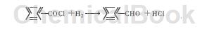 ⑵ Reduction reaction: benzoyl chloride is hydrogenated and reduced by adding palladium catalyst to generate benzaldehyde: