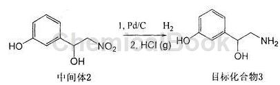 b. Dissolve the intermediate product 3-(1-hydroxy-2-nitro)ethylphenol in anhydrous methanol, add a palladium carbon catalyst, catalytically hydrogenate at room temperature and normal pressure, and stir for 10-20 hours. It was filtered through diatomaceous earth and the filtrate was concentrated to obtain the crude product.