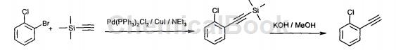 2-Chlorophenylacetylene is an organic intermediate that can be prepared from 2-bromochlorobenzene in two steps.