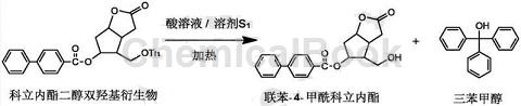 Prostaglandins are an important class of endogenous physiologically active substances. They are important mediators in various physiological processes and have high pharmacological activity. Clinically, prostaglandins are all artificially synthesized. Coreylactonephenylbenzoate, (3aR, 4S, 5R, 6aS)-(-)-hexahydro-4-(hydroxymethyl)-2-oxo-2H-cyclopenta[ b] Furan-5-yl 1,1′-biphenyl-4-carboxylate) is a chiral intermediate for the synthesis of PGF2α prostaglandin drugs. Its molecular formula is C21H20O5 and its chemical name is hexahydro-4-(hydroxymethyl). -2-Oxo-2H-cyclopenta[b]furan-5-yl 1,1′-biphenyl-4-carboxylate, usually including (±)biphenyl-4-carboxylic acid lactone, (-)Biphenyl-4-carboxylicolactone and (+)biphenyl-4-carboxylicolactone, reported as 2-oxabicyclo[3.3.0]oct-6-ene-3 -Ketone is used as raw material, and biphenyl-4-carboxylic acid lactone is synthesized through five-step reaction. The main problems of this method are: many steps, complex operations, and long cycle; many process side reactions, difficult to control quality, high product impurities, low purity, and low yield; triphenylmethanol, a by-product produced in the process, cannot be recovered, and it is difficult to dispose of waste. increase cost. These reasons affect the prospects for the use of biphenyl-4-carboxylicolactone, which in turn affects the further development and application of prostaglandin drugs. Therefore, it is necessary to develop a method for preparing biphenyl-4-carboxylic acid lactone with few steps, simple operation, short cycle, high purity, high yield and low cost. The preparation of methanol is very necessary to improve the effective utilization of waste and to develop the application of biphenyl-4-carboxylic acid lactone.