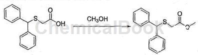 Calculate the amount of raw materials based on the theoretical production amount of diphenylmethylthioacetamide: 39.85g; in a 500mL three-neck round-bottom flask, add 40g of diphenylmethylthioacetic acid and 80mL of methanol obtained in step a, and stir until complete Dissolve, slowly add 10 mL of concentrated sulfuric acid dropwise, and after completion of the dropwise addition, raise the temperature to 65°C and reflux for 3 hours, and use TLC to monitor the reaction progress until the reaction is complete;