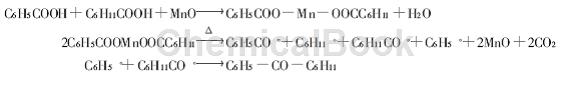 Fully dissolve the organic phase, filter the composition through a Buchner funnel, and calculate the yield. Filter with shaking for 3 times, use liquid chromatography to analyze the composition of the filtrate, and calculate the yield. The relatively pure cyclohexyl phenyl ketone can be obtained by distilling the filtrate under reduced pressure. In the reaction where manganese salt or oxide is the catalyst, benzoic acid, cyclohexylcarboxylic acid and the catalyst generate carboxylic acid manganese salt C6H5COO -Mn -OOCC6H11, and the product cyclohexyl phenyl ketone is mainly generated by high-temperature pyrolysis of carboxylic acid manganese salt. The reaction is a free radical process, and the mechanism is as follows: