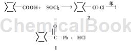 Add anhydrous aluminum trichloride (38 g, 0. 37 mol) and benzene (80 ml, 0. 90 mol) into the reaction bottle, slowly add 2 dropwise while stirring at room temperature, and reflux for 4. 5 h. Pour into 10% hydrochloric acid (500 ml) at 0°C, separate the organic layer, extract the aqueous layer with benzene (200 ml×2), combine the organic layers, wash with saturated sodium bicarbonate solution and water until neutral, and use Dry over hydrated magnesium sulfate and distill under reduced pressure. Collect the 130~134°C/4.27 kPa fraction to obtain 1 (43.2 g, 99.1%), mp 55.5~56°C (document yield 76%, mp 55. 5~57. 3℃). The purity is greater than 99% (online determination of color and quality).