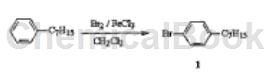 The specific steps are as follows: Dissolve phenylheptane (100g, 0.57mol) in 900mL chloroform, and add ferric chloride (1.41g, 9mmol). The mixture was cooled to 0 °C and bromine (32 mL, 0.62 mmol) was added dropwise through a separate funnel. The reaction was kept in the dark to prevent bromination of aliphatic side chains. After stirring at room temperature overnight, the reaction was quenched with 1NKOH. After extraction, the organic phase was washed with water and dried over MgSO4. The crude product was a brown oily substance. It was purified by silica gel column chromatography using heptane as the eluent to obtain 60g of pure product 4-n-heptylbromobenzene as a light yellow oily substance at 42°C. %let. 1HNMR (CDCl3) δ (ppm): 0.88 (t, J=6.9Hz, 3H), 1.26-1.31 (m, 8H), 1.54-1.59 (m, 2H), 2.54 (t, J=7.8Hz, 2H) , 7.04 (d, J=8.2Hz, 2H), 7.38 (d, J=8.2Hz, 2H). FD-MS: m/z255 (M+).