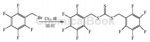 CN201410497677.0 overcomes the shortcomings of existing RAFT reagents such as difficulty in effectively controlling the polymerization process of high fluorine-containing monomers and the unstable end groups of the resulting polymerization products, and provides a method with excellent solubility and energy in supercritical carbon dioxide. Fluorine-containing RAFT reagents that effectively control the polymerization process of fluorine-containing monomers and can provide highly stable fluorine-containing end groups for polymers. The synthesis process is as follows: Dissolve carbon disulfide in the solvent, then add α-bromo-2,3,4,5,6-pentafluorotoluene dropwise, stir thoroughly, add alkali, α-bromo-2,3,4, The molar ratio of 5,6-pentafluorotoluene, carbon disulfide, alkali and solvent is 1:1~3:0.5~2:10~40. Stir at 25~50°C for 12~24 hours. Add ice water to quench the reaction. The product is separated and purified to obtain trithiocarbonate-bis(pentafluorobenzyl)ester. The molar ratio of α-bromo-2,3,4,5,6-pentafluorotoluene, carbon disulfide, and alkali is preferably 1:2 to 2.5:1 to 1.5.