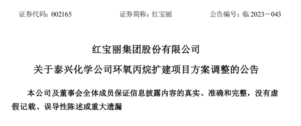 On September 21, Hongbaoli released the “Announcement on the Adjustment of the Taixing Chemical Company’s Propylene Oxide Expansion Project Plan” stating that the Taixing Chemical Company’s propylene oxide expansion project originally planned to increase the annual production capacity of propylene oxide. 100,000 tons expanded to 250,000 tons,