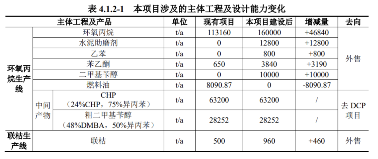 The main project of the project is the propylene oxide production line and the Lianqu production line. The main projects involved and the changes in product design capabilities before and after completion are as follows: