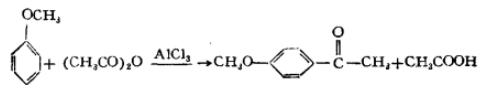 1. Anisole interacts with acetic anhydride or acetyl chloride in the presence of anhydrous aluminum trichloride, and is produced through acetylation reaction. The reaction formula is as follows: