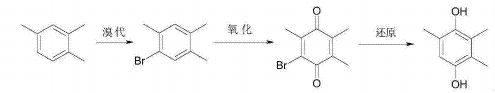 Trimethylhydroquinone is the main raw material for synthesizing vitamin E. Using 1,2,4-trimethylbenzene as the raw material, trimethylhydroquinone is finally prepared through bromination reaction, oxidation reaction, and reduction reaction. The reaction equation is as follows. This process has a short synthesis route and high yield. The bromine element can be completely recycled through recovery. It is a clean synthesis process that solves the shortage of cresol sources in the existing process and the serious pollution problems in the paraxylene process.