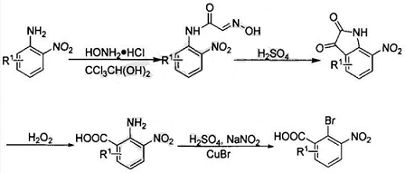 Some research has developed a method for preparing phenazine-1-carboxylic acid, using the following steps: aniline reacts with chloral hydrate and hydroxylamine to produce α-oxime acetanilide, and then treated with concentrated sulfuric acid to obtain isatin, indigo Red reacts with hydrogen peroxide to obtain 2-amino-3-nitrobenzoic acid, and then undergoes Sandmeyer reaction to obtain 2-bromo-3-nitrobenzoic acid; the prepared 2-bromo-3-nitrobenzoic acid and aniline undergo Jourdan-Ullmann reaction Obtain substituted diphenylamine, and then close the ring to prepare phenazine-1-carboxylic acid.