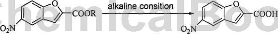 Method 1: Use 5-nitrobenzofuran 2 formic acid R ester as the starting material, add an appropriate amount of alkaline solution, and then stir and react at a certain temperature for 2 to 3 hours to obtain the hydrolyzate. The post-treatment method is simple. After adjusting the pH and filtering, the target product with higher purity can be obtained. The solvents used refer to alcohols (methanol, ethanol, isopropyl alcohol), acetone, tetrahydrofuran, water, N, N dimethylformamide or their mixed solvents. Among them, water is preferred. The reaction temperature that needs to be controlled is room temperature to 100°C, preferably room temperature.