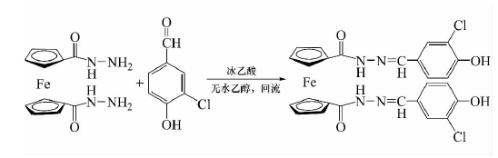 Ferocene and its derivatives have the characteristics of stability, low toxicity, lipophilicity, rich electricity and redox properties, and can prevent themselves from approaching the active sites of certain enzymes. It also has anti-tumor activity and is therefore often used as a drug to treat certain diseases. Acylhydrazone compounds have both amide and Schiff base functional groups, which can form stable complexes with metal ions in organisms, thereby preventing some enzyme-catalyzed reactions, and have excellent biopharmacological activity. In relation to the biological environmentUnder recent conditions, it can have antibacterial, anti-amoeba, anti-tumor, anti-viral, and anti-tuberculosis effects. The introduction of acylhydrazone groups into ferrocene with redox properties is conducive to the controlled release of drug molecules through external voltage stimulation or potential changes in the physiological environment of diseased tissues and normal tissues. This voltage-sensitive responsiveness is It provides the possibility for active transportation of drugs. Some studies have introduced acylhydrazone functional groups into ferrocene molecules with fat solubility and excellent redox activity, and reacted 1,1′-ferrocene bishydrazide with 3-chloro-4-hydroxybenzaldehyde to synthesize ferrocene. Diacylhydrazone compounds.