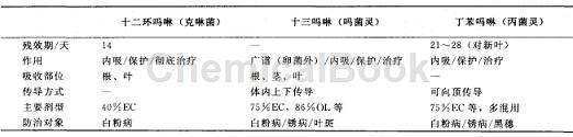 , the double bond reduction process is inhibited, or sterol epoxidase is inhibited. A comparison of the 3 main morpholine fungicides is as follows: