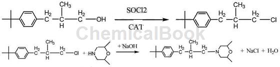Method 2: A synthesis method of fenpropimorph: using p-tert-butyl-β-methylphenylpropanol as the starting material, esterification with methylsulfonyl chloride or chlorination with thionyl chloride During the chemical synthesis: after the intermediate, the intermediate is synthesized with 2,6-dimethylmorpholine to generate fenfenmorpholine. The chemical equation is as follows: