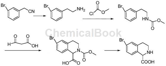 The earliest extracted plant alkaloids were quinine and morphine, and the basic core of some Chinese herbal medicines with cardiovascular pharmacological activity is also tetrahydroisoquinoline. Due to the various pharmacological activities of tetrahydroisoquinoline derivatives, they have played an important role in drug research and pharmaceutical production. 6-Bromo-1,2,3,4-tetrahydroisoquinoline-1-carboxylic acid, as an important tetrahydroisoquinoline derivative, has a large demand especially in cardiovascular diseases, so the synthesis research of this compound is very important. important practical significance.