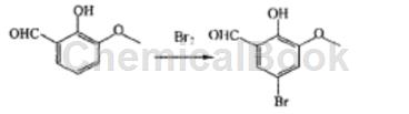 The specific steps are as follows: Add o-vanillin (16 g) to a 1 L round-bottomed flask, then add glacial acetic acid (80 g), potassium bromide (25 g) and 40 mL water, and heat the reaction solution to 100°C, then dropwise add liquid bromine (17.5 g), complete the addition in 50 minutes, react at 100°C for 90 minutes, cool to 70°C, evaporate most of the solvent under reduced pressure, then add 1L of water, cool to 0~5℃, incubate for 2 h, centrifuge to separate the product, wash the product with 2×10 mL water, and vacuum dry for 21 h, yield: 14.8g (92.5%).