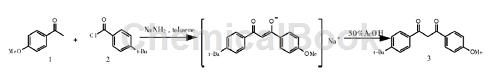 At present, the main methods for synthesizing avobenzone are: ①Condensation addition elimination hydration method, that is, p-methoxyacetophenone and p-tert-butylbenzaldehyde undergo condensation, bromine addition, elimination to form alkyne, and hydration The product is obtained with a yield of 58%. This method has a long route, high cost and low yield; ② Claisen ester condensation method, that is, the reaction of p-methoxyacetophenone and p-tert-butyl methyl benzoate, the yield is 63.6%, this method is low cost and easy to operate, but the yield is low; ③Aldehyde-ketone condensation method, that is, p-methoxyacetophenone and p-tert-butylbenzaldehyde are condensed into alcohol and oxidized to obtain it, with a yield of 34.6 %, this method is easy to operate, has high cost and low output.