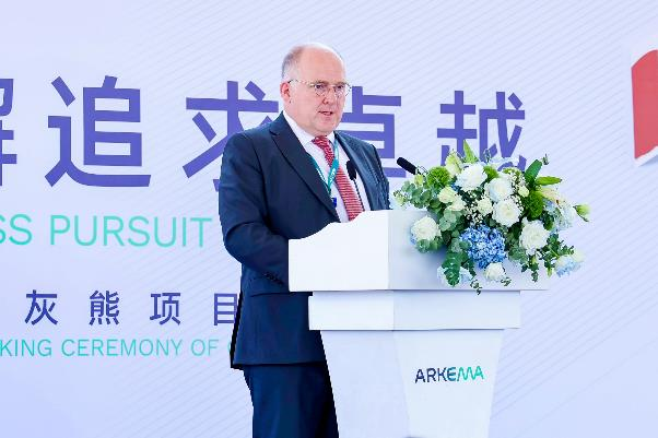 Mr. Romuald de Haut de Sigy, Global President of Arkema Functional Additives Division, delivered a speech at the project groundbreaking ceremony