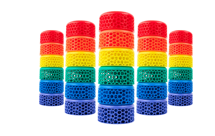 Adjustable material stiffness values from 78A-55A as the company is able to adjust lattice parameters such as cell size and strut diameter to allow for a wider range. This also enables applications requiring tactile qualities.
