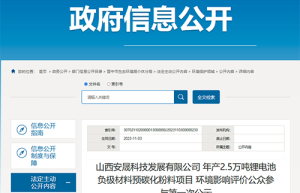 Announcement of Environmental Impact Assessment of Shanxi’s 25,000-ton Lithium Battery Anode Material Project