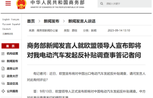 In response to the announcement by EU leaders on September 13 that they would launch a countervailing investigation into electric vehicles imported from China, a spokesman for the Ministry of Commerce…