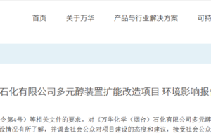 Recently, the draft environmental impact report of Wanhua Chemical (Yantai) Petrochemical Co., Ltd.’s polyol unit expansion and transformation project was released for public comment. Project Overview…