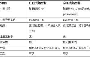 Comparison between glue-injected insulated aluminum profiles and strip-type aluminum profiles